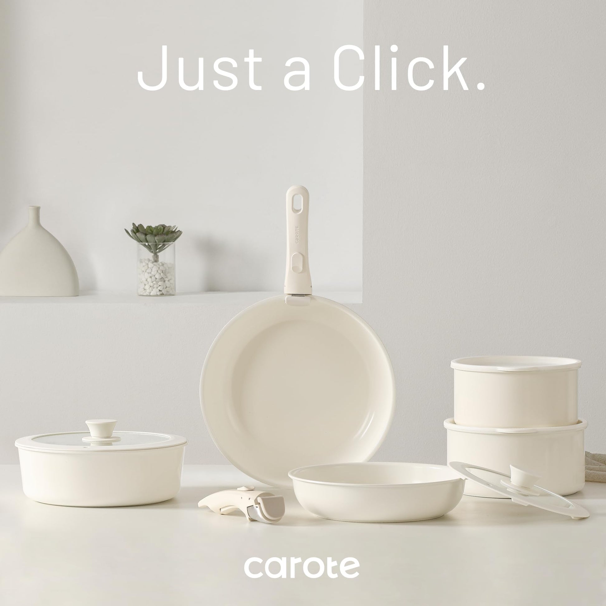 CAROTE 15pcs Pots and Pans Set, Ceramic Cookware Set Detachable Handle, Induction Nonstick Kitchen Cookware Sets with Removable Handle, Non Stick RV Cookware Set, Dishwasher/Oven Safe Cookware Set