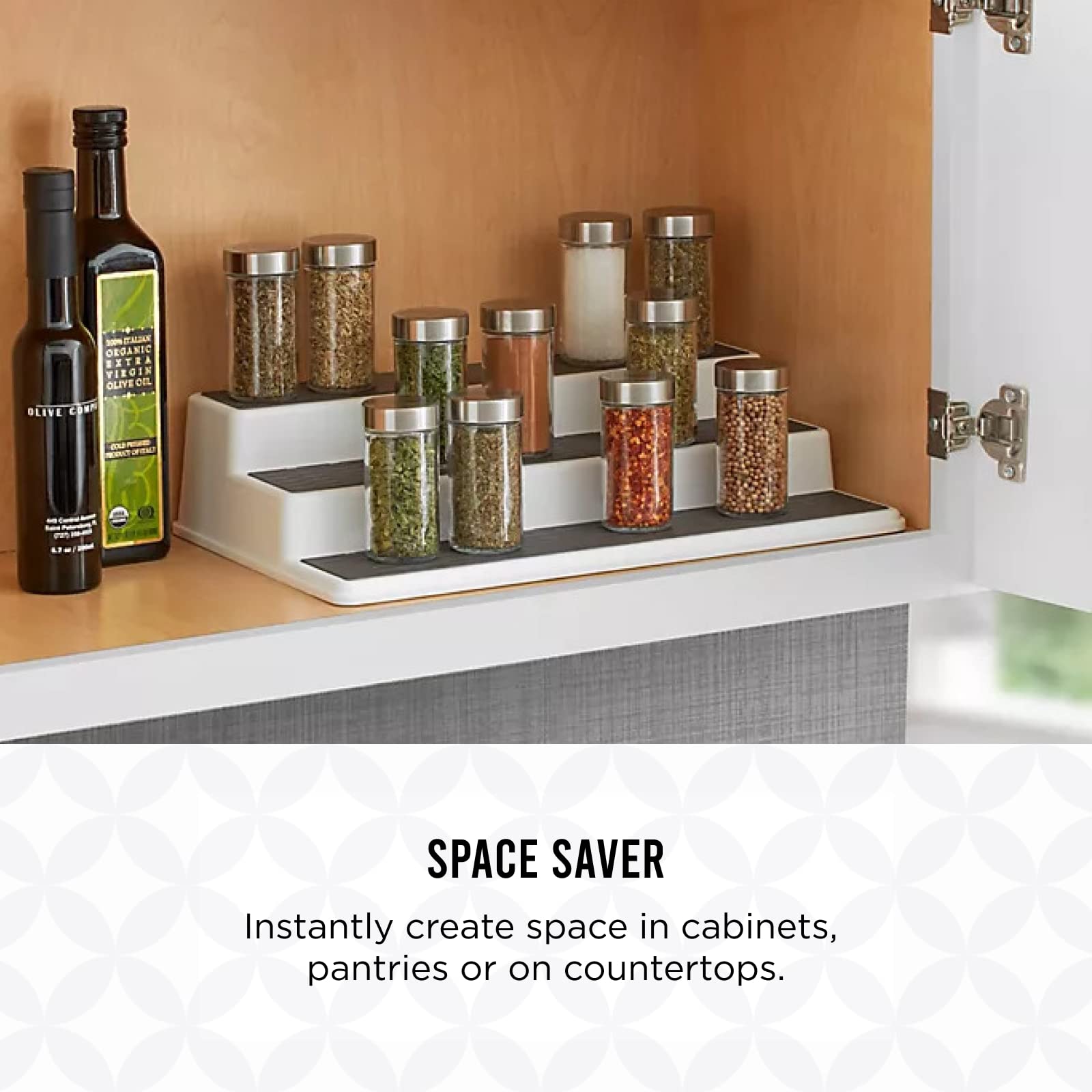 Non-Skid 3-Tier Spice Pantry Kitchen Cabinet Organizer, 10-Inch, White/Gray