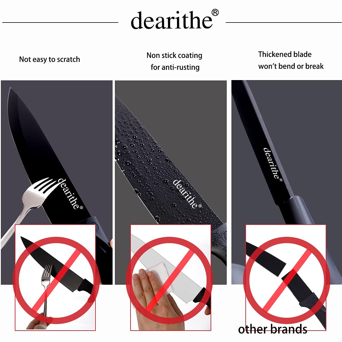 Crafted in high carbon stainless steel, durable and sharp. Our chef knife\ carving knife\bread knife blades, which are 0.72 inch thickness, are not easy to bend or break.
