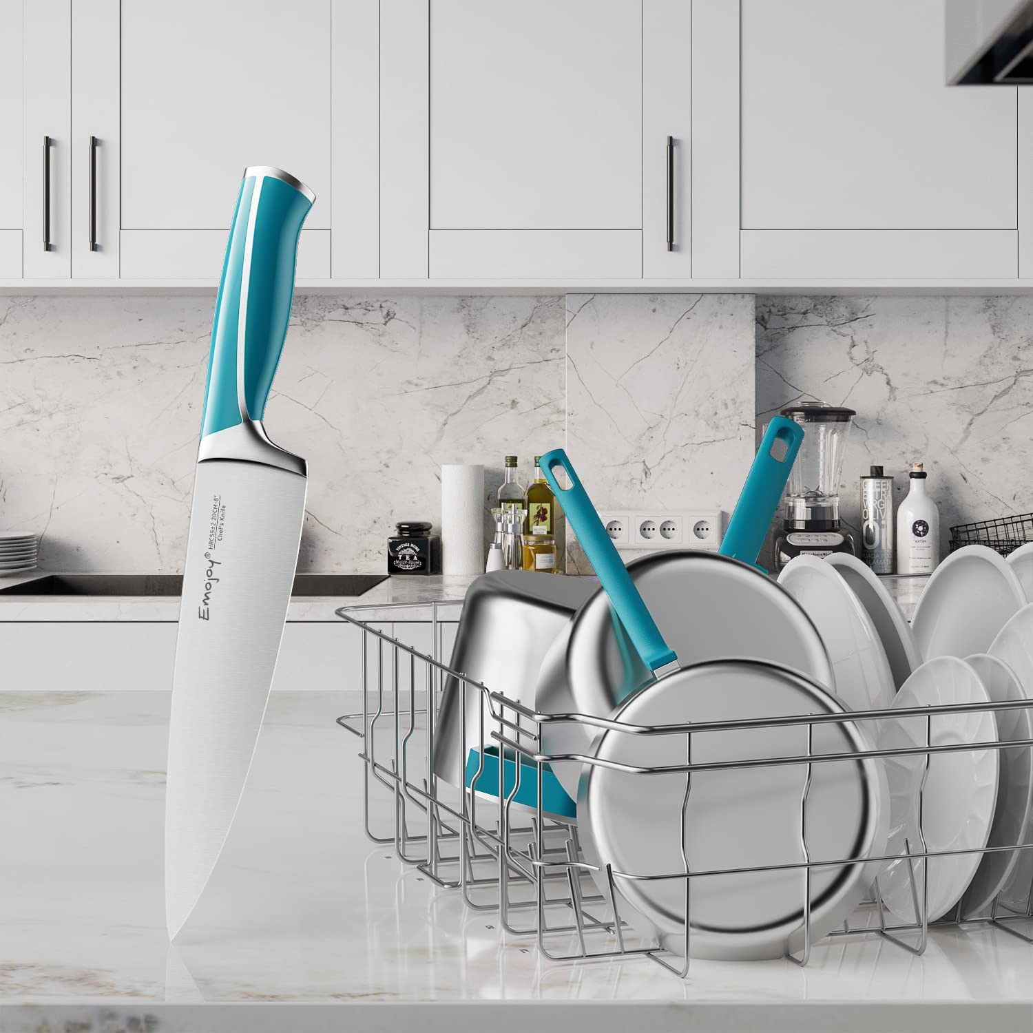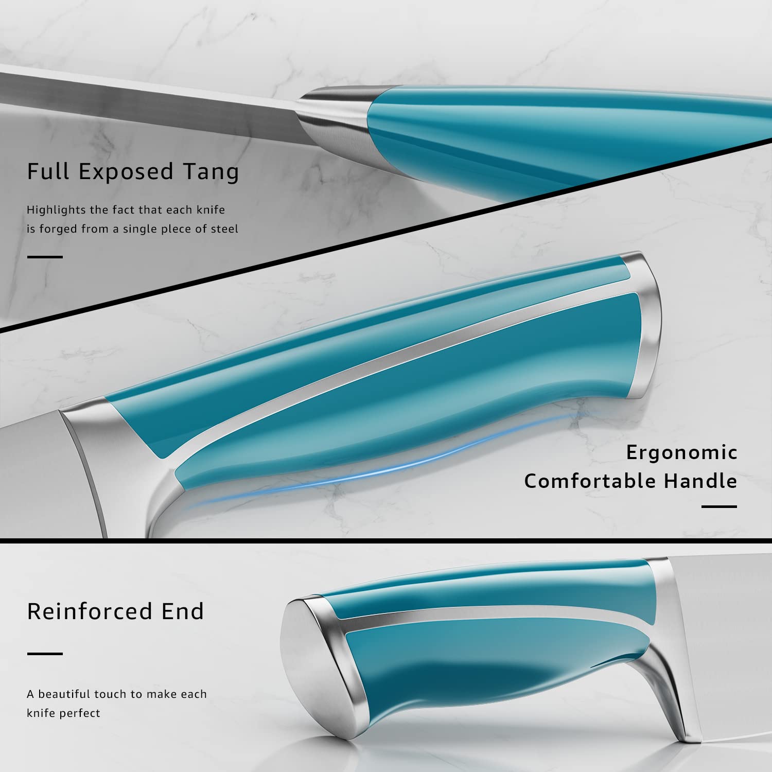 - 【Rust Proof】The kitchen knife set blades are forged from 3cr13movSuperior high carbon stainless steel, which is heat treated to prevent rust and oxidation.