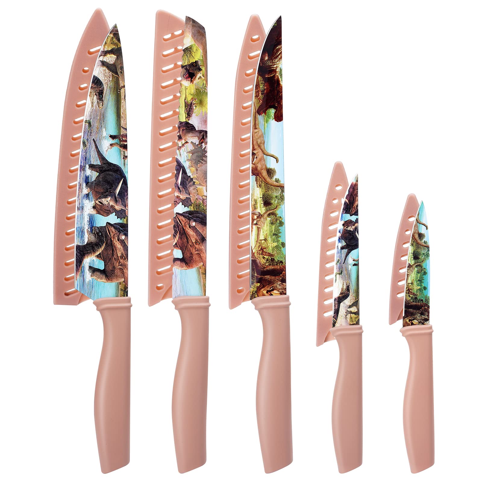Chef Knives with Dinosaur Pattern 5-piece Kitchen Knife Set
