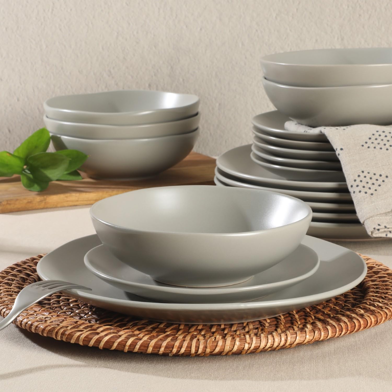 Gibson Home Bethel 18 Piece Plates and Bowls Ceramic Stoneware Organic Shape Dinnerware Set (Service for 6) - Matte Grey