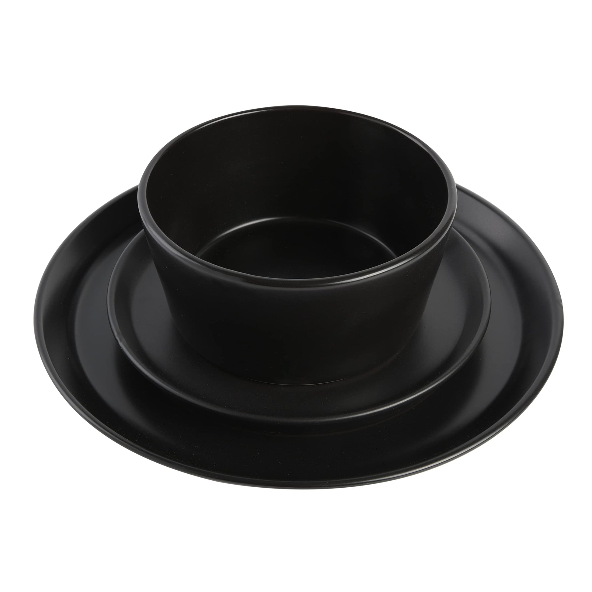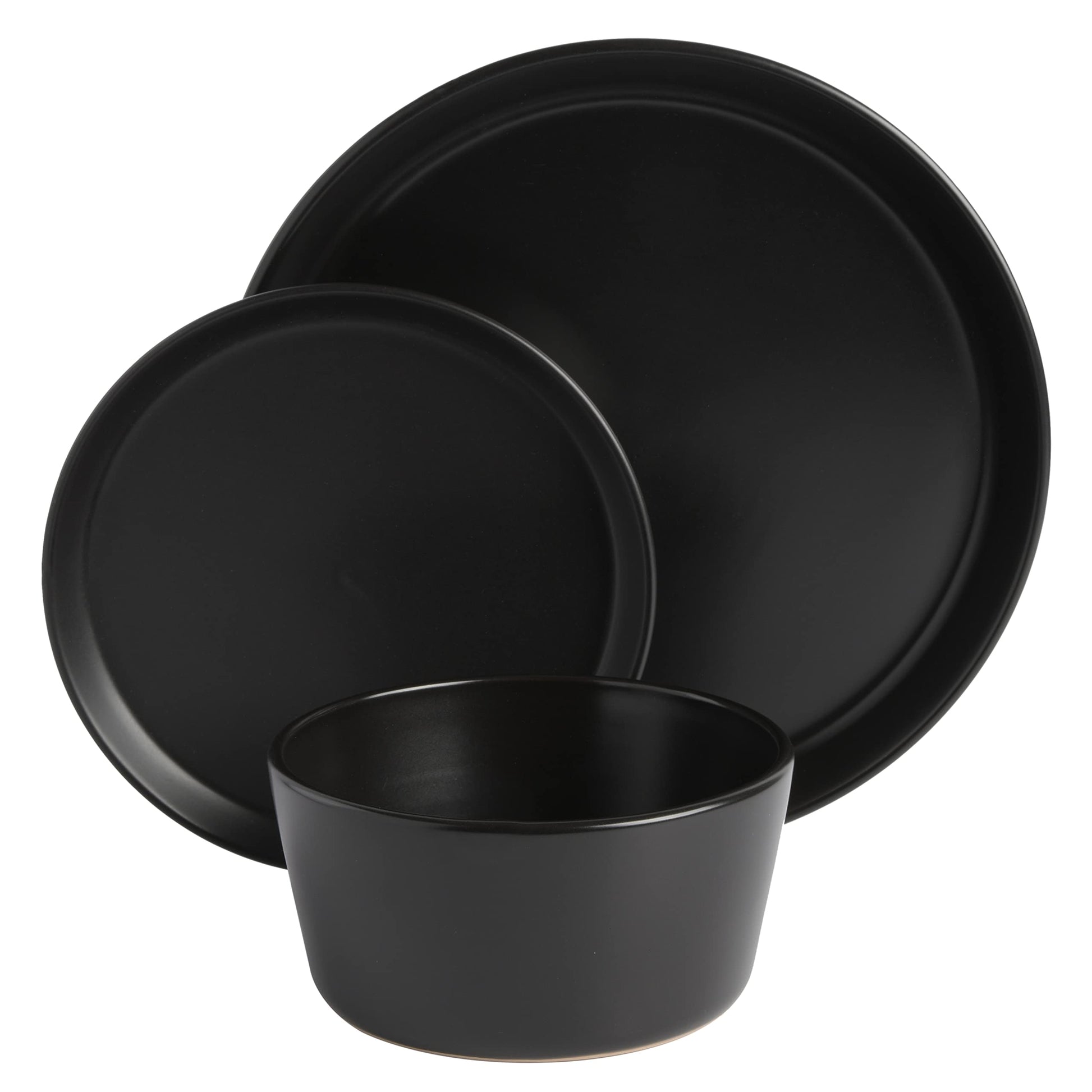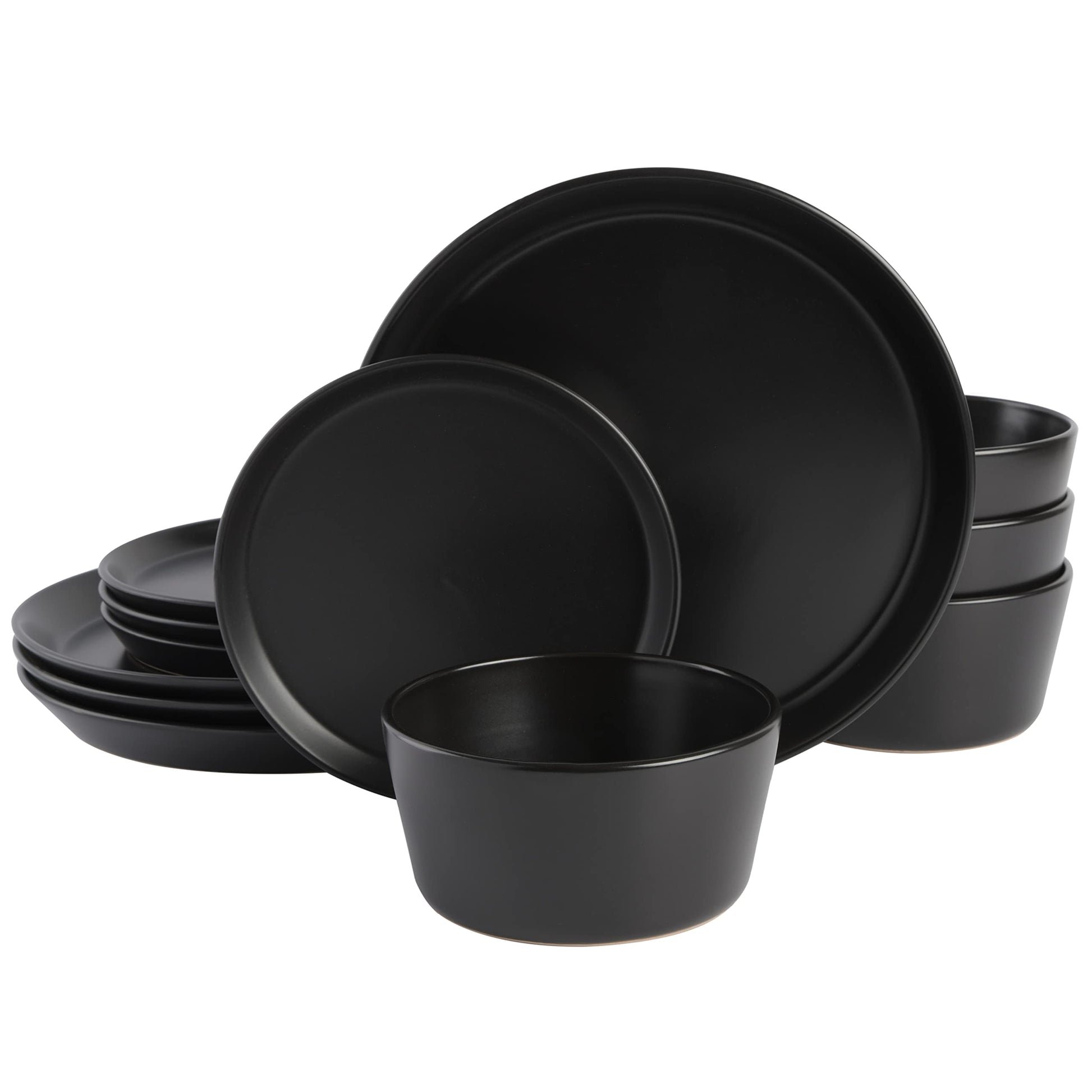 Gibson Soho Lounge Sofia Coupe Stoneware Dinnerware Set, Service for 4 (12pcs), Black