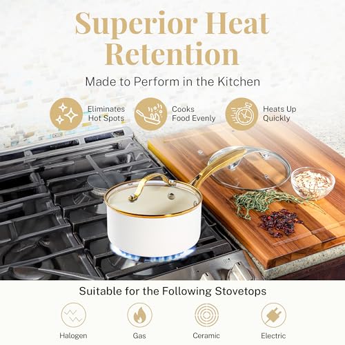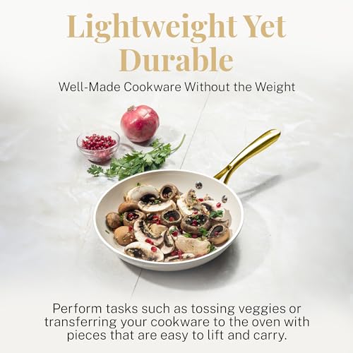 - GOTHAM STEEL NATURAL COLLECTION: Healthier cooking is easy with this nonstick ceramic cookware set. Pots and pans are designed to be 2x more durable, dishwasher safe, and oven safe up to 500˚F. Gold stay-cool handles allow you to go from stovetop to oven. But this set doesn’t just cook good, they look good too, with a modern cream color that adds an elevated aesthetic to your kitchen.