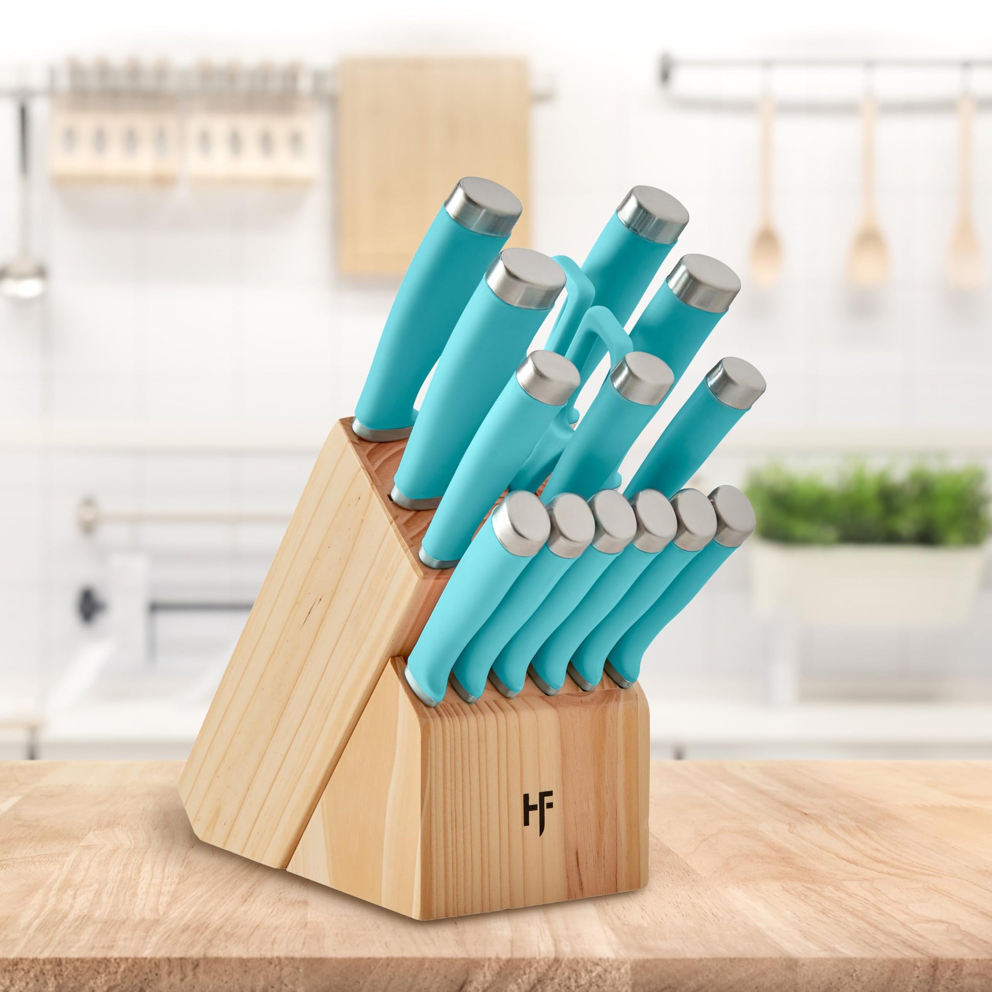 Hampton Forge Epicure True Aqua Knife Block Set, 15 Piece