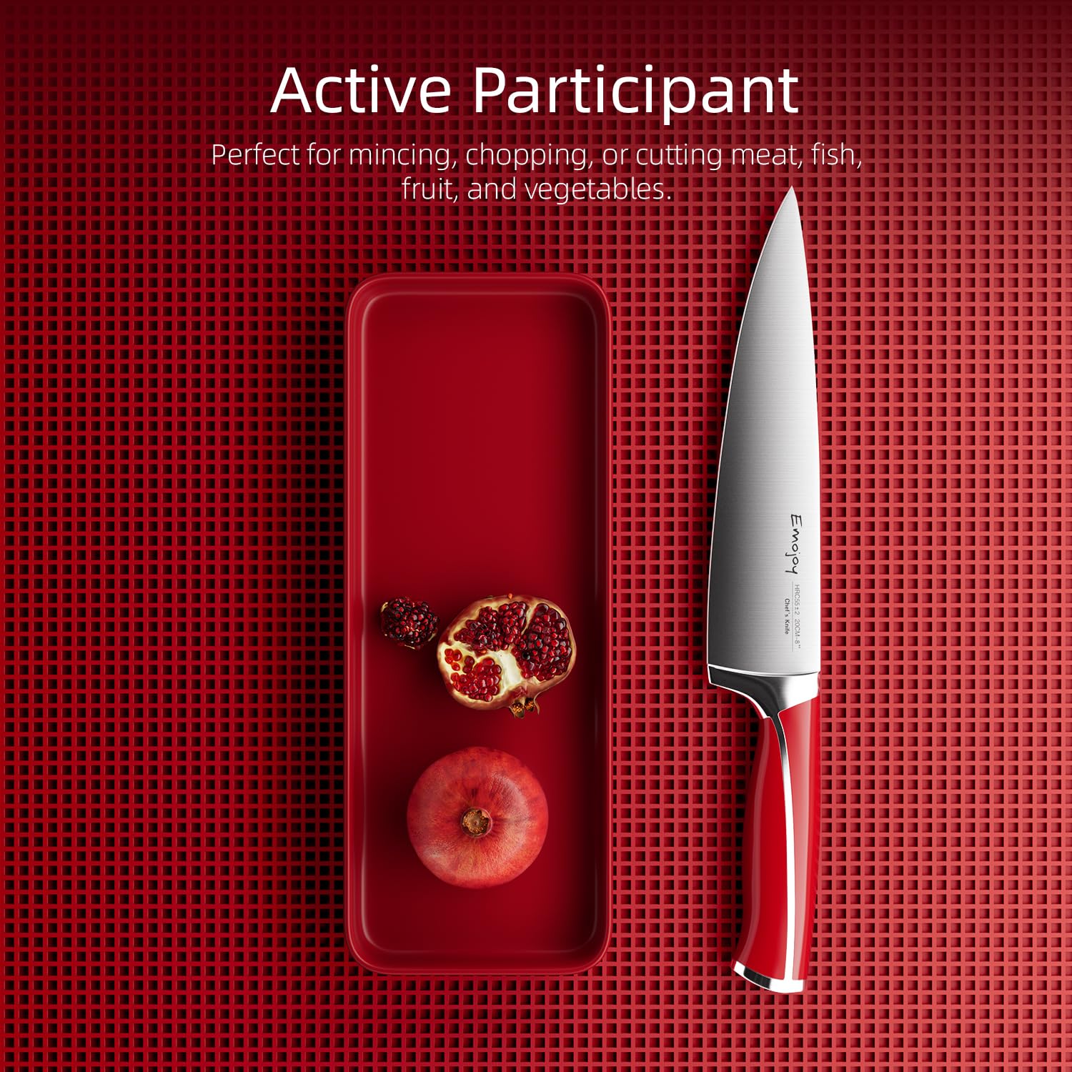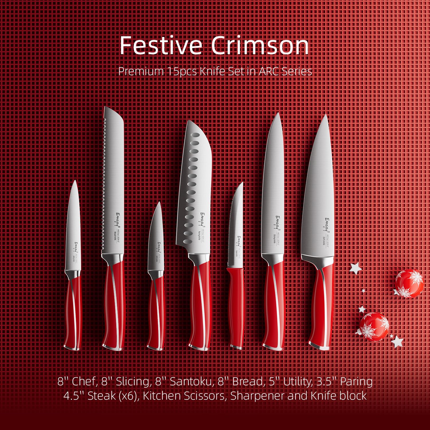 Details: Knife Set, Kitchen Knife Set with Block Wooden, Emojoy 15-Pieces Knife Block Set Kitchen Knives German Stainless Steel Chef Knife Set with Sharpener