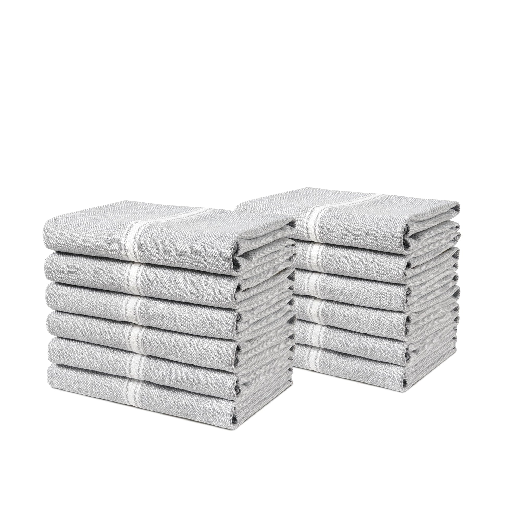 LANE LINEN Kitchen Towels Set - 100% Pure Cotton Dish Towels for Kitchen, Super Absorbent Kitchen Hand Towel, Grey Tea Towels, Soft & Durable Dish Cloths, Pack of 12 – 15”x25”, Grey Chambray