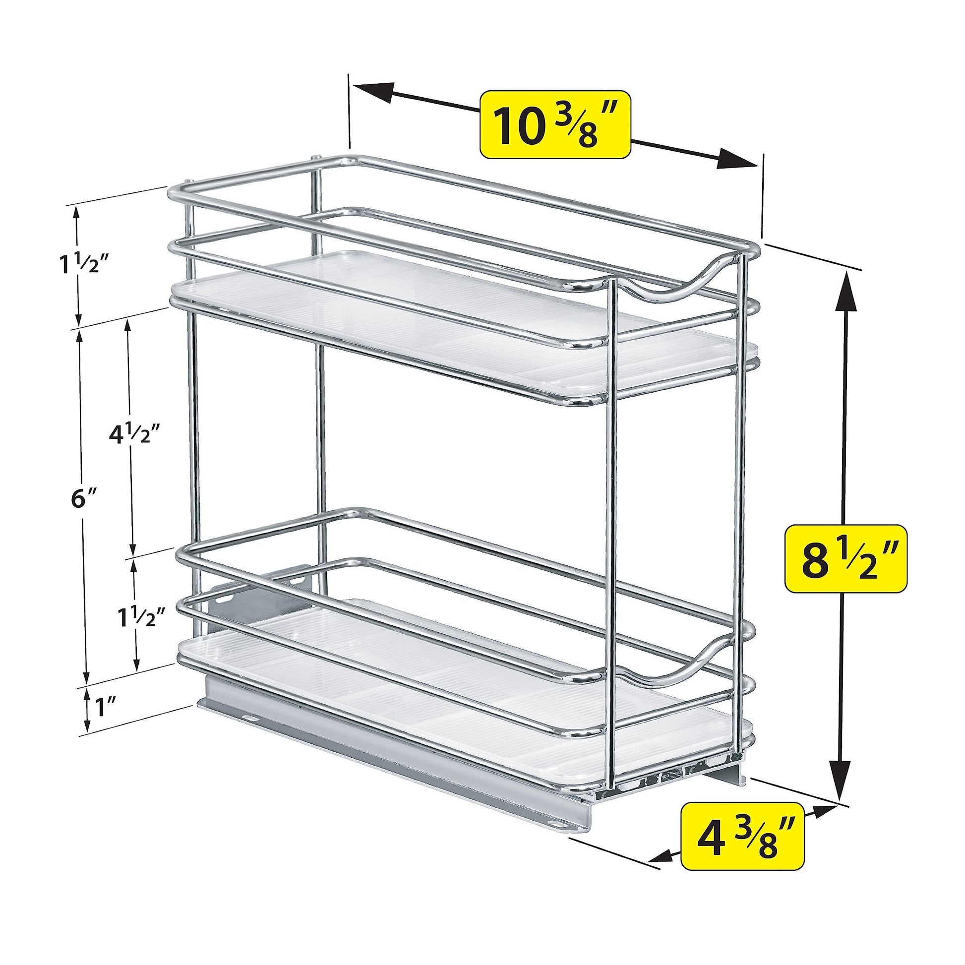 LYNK PROFESSIONAL® Pull Out Spice Rack Organizer for Inside Kitchen Cabinets - 4-1/4 inch Wide - Slide Out Drawer – Chrome Sliding Spice Cabinet Organization Shelf Racks - 2 Tier