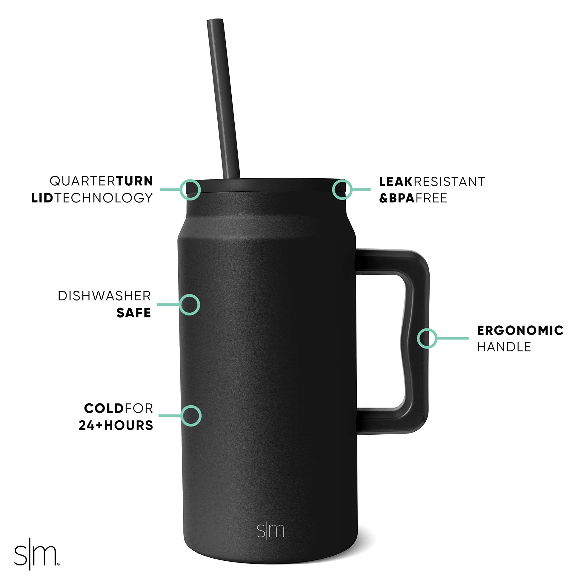 Simple Modern 50 oz Mug Tumbler with Handle and Straw Lid | Reusable Insulated Stainless Steel Large Water Bottle | Gifts for Women Men Him Her | Trek Collection | 50oz | Midnight Black