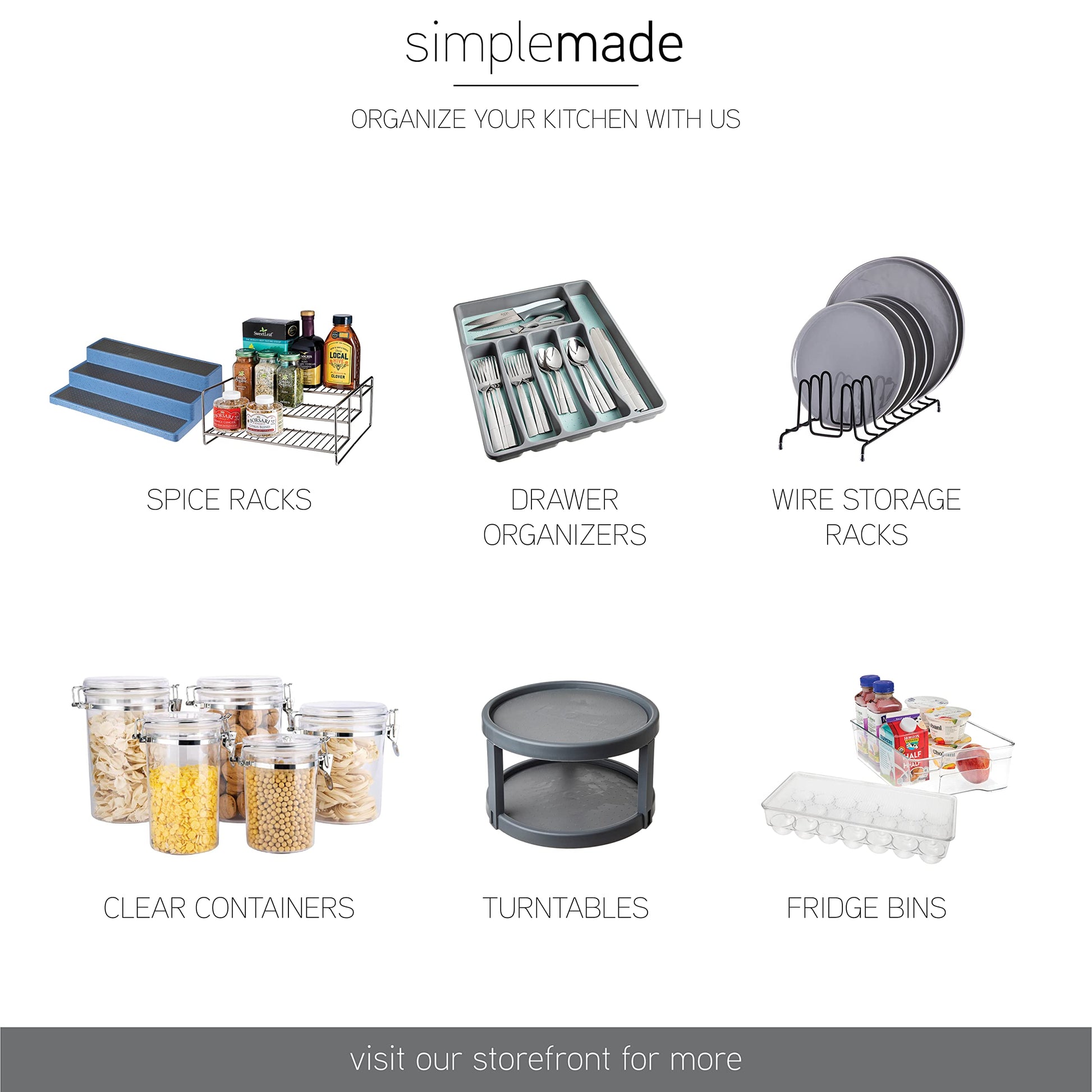 Details: Keep yourself organized with this spice storage rack from simplemade. This three-tiered rack increases visibility allows for easy access to your items. The rack has deep shelves to catch spills and prevent them from spreading in your drawers, cabinets, and countertops. Use this versatile organization rack throughout your home- in your kitchen cabinets and counters to store spices, your desk to keep office supplies organized, your bathroom to organize makeup and toiletries, or a kids’ playroom to organize arts and craft supplies. It is made of high quality plastic making it durable to withstand every day use and is easy to clean and wipe down. Combine this storage rack with other simplemade storage items to completely reorganize your home.