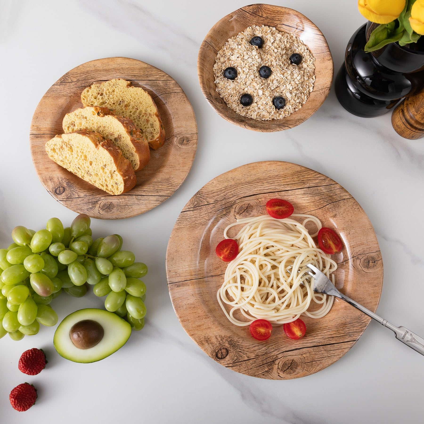 - SPECIAL DESIGN: The dinnerware set inspire natural wood grain texture design with organic shape. It is an amazing look and will make you enjoy the dinner and have a good mood.