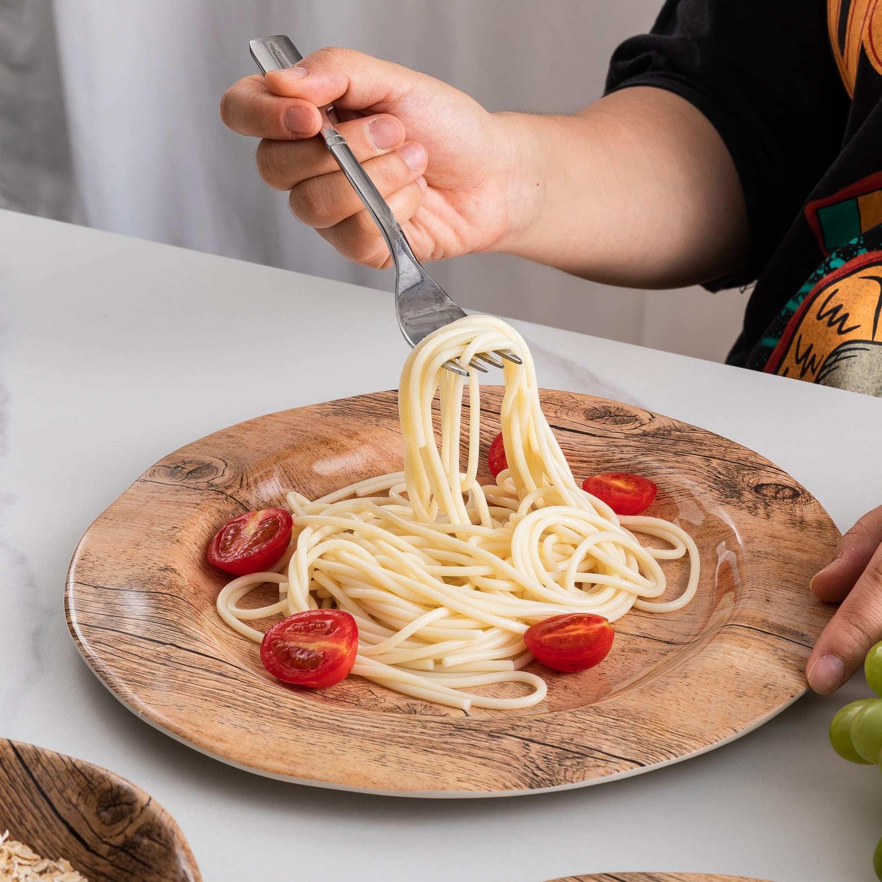 - PREMIUM QUALITY: This wooden dinner plates set is durable. It is made of 100% pure melamine which much better Quality than just say melamine products in the market. It performs well between -20℃~+120℃ .It is also shatter-proof, chip-resistant and scratch-proof. You do not need to worry if they will break easily when it falls down accidentally.